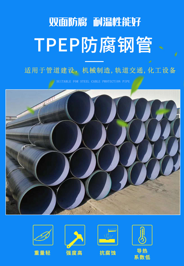 涂層厚度:PE(改性聚乙烯)涂層厚度為400um—1000um,EP(環氧樹脂)噴涂厚度為100um-400um;